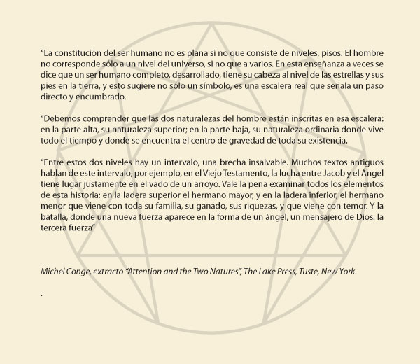 “Debemos comprender que las dos naturalezas del hombre están inscritas en esa escalera: en la parte alta, su naturaleza superior; en la parte baja, su naturaleza ordinaria donde vive todo el tiempo y donde se encuentra el centro de gravedad de toda su existencia.”